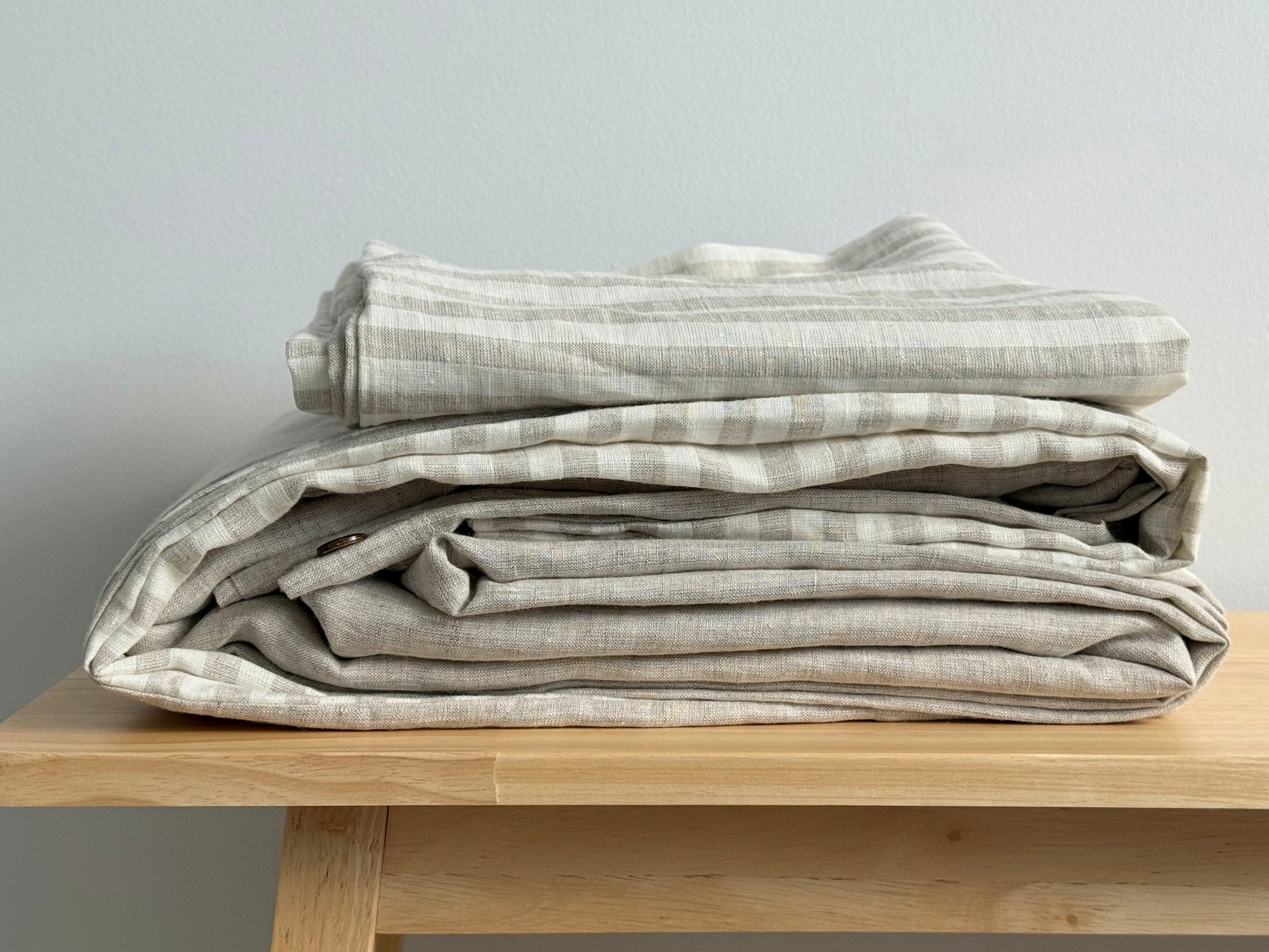 Double the charm, double the comfort—with timeless Oatmeal on one side and soft Natural Stripe on the other. Flip it to suit your mood and enjoy premium European linen, both ways.