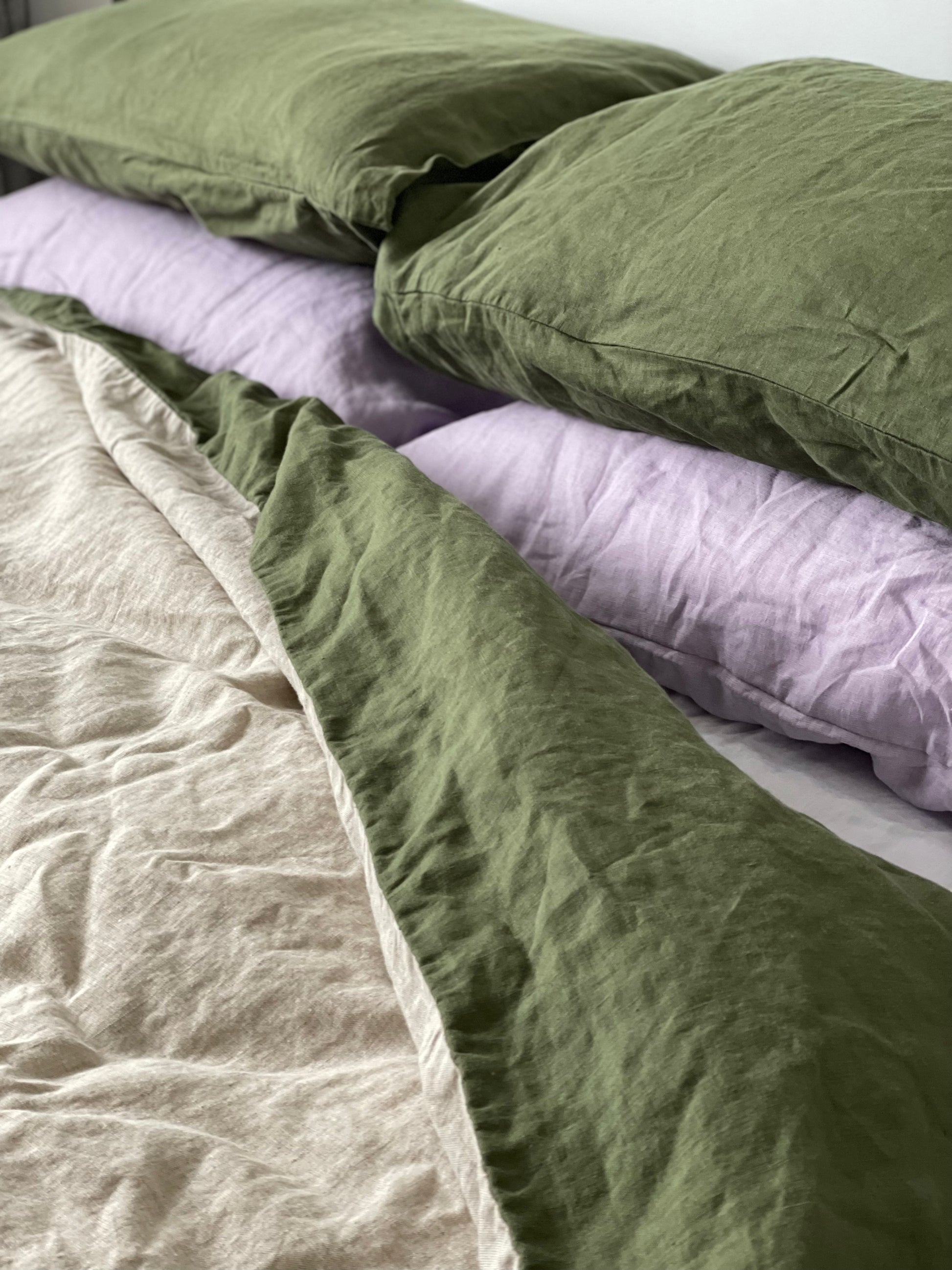 Duo-sided Quilt Cover - Moss/Oatmeal
